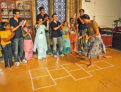 中新網(wǎng)11月7日電 據(jù)美國媒體報(bào)道,美國第一夫人米歇爾隨奧巴馬訪問印度期間,在孟買大學(xué)與33名貧困兒童一起玩耍,不僅又唱又跳,還玩起了“跳房子”游戲。