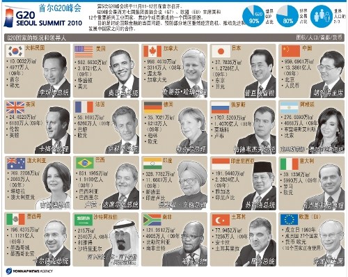 中新網(wǎng)11月11日電 綜合外電報(bào)道,備受關(guān)注的二十國(guó)集團(tuán)(G20)峰會(huì)11月11日將在韓國(guó)首都首爾舉行。此間媒體預(yù)測(cè),G20首爾峰會(huì)將以匯率、全球金融安全網(wǎng)、國(guó)際金融組織改革和發(fā)展為四大主要議題。