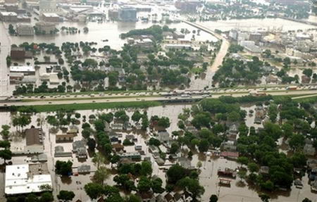 美國西中部地區最近幾天遭到了洪水的襲擊,一名男子因車輛墜入暴漲的河流而生命垂危,另外兩人則獲救。官員們估計錫達拉皮茲市有100個城區被洪水淹沒。林縣治安官多恩-擇利爾稱:“我們現在只能聽天由命了,對于那些在此之前從不祈禱的人們來說,現在可能是開始祈禱的一個時間了。我們將需要許多祈禱,人們將需要許多耐心和理解。”治安官稱,他的辦公室也被淹沒,縣監獄的犯人不得不被轉移。由于加緊了壘沙袋的工作,錫達河上流城市錫達福爾斯市和滑鐵盧市幸運地躲過了洪水的襲擊。