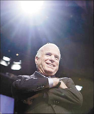 在外交和軍事政策領域的比拼中,古稀之年的麥凱恩顯然要比少年得志的奧巴馬老練得多。出身將門的麥凱恩可謂身經百戰(zhàn),其作為戰(zhàn)俘在越南監(jiān)獄中度過5個春秋的傳奇經歷更使其愛國精神無人能敵。麥凱恩一方面充分利用這些有利條件把自己塑造成美國民眾足可信賴的政治家和總司令,另一方面持續(xù)攻擊奧巴馬缺乏外交和軍事經驗的弱點。