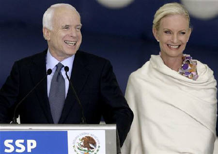 7月3日,美國(guó)共和黨總統(tǒng)候選人麥凱恩同妻子辛迪出席在墨西哥城的一個(gè)新聞發(fā)布會(huì)。