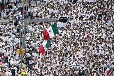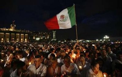 8月30日晚,近20萬墨西哥人身著白衣,手持墨西哥國旗和燃燒的蠟燭,穿過墨西哥城的大街小巷,聚集在市中心憲法廣場,將廣場變成了燭光的海洋。這一名為“讓我們照亮墨西哥”的游行抗議同時在墨西哥32個州舉行。墨西哥民眾呼喊口號,唱著國歌,要求政府立即采取行動制止在這個國家日益嚴(yán)重的綁架、火并和殺人等犯罪行為。