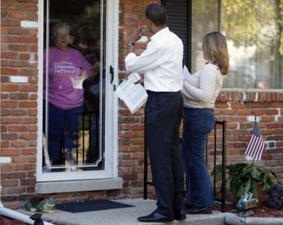 挨家挨戶拉票中,幾位居民向奧巴馬表達(dá)了對(duì)經(jīng)濟(jì)的憂慮;很多經(jīng)濟(jì)學(xué)家認(rèn)為美國經(jīng)濟(jì)正在走向衰退,由于全球金融危機(jī),上周美國主要股指下降了18個(gè)百分點(diǎn)。