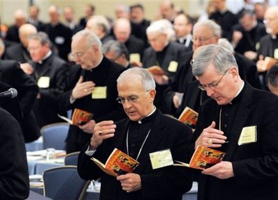 11月11日,主教們?cè)诿绹?guó)天主教主教半年會(huì)上祈禱