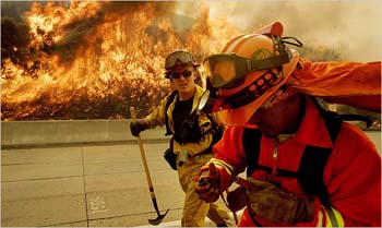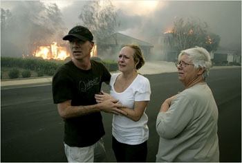 據(jù)英國廣播公司報道,目前,在受災(zāi)嚴重的圣塔巴巴拉附近,已有幾所價值數(shù)百萬美元的豪宅化為灰燼。往東80英里的洛杉磯郊區(qū)西爾瑪,大火吞噬了約500所移動民宅。 再往東,另外一處勢頭強勁的大火在河畔和奧蘭治縣熊熊燃燒,20萬居民被迫緊急疏散。當?shù)毓賳T表示,重鎮(zhèn)洛杉磯隨時面臨斷電危險。