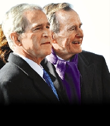 中新網1月13日電 據香港《文匯報》報道,布什和父親老布什這對美國史上第2對“總統父子兵”,11日8年來首次同臺受訪,大談父子關系。布什感激父親無條件的支持,老布什則以“非常正面”來形容兒子8年任期。