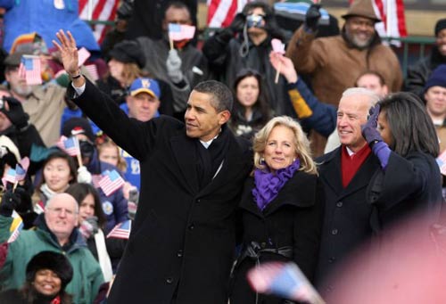 中新網1月18日電 美國新任總統副總統就職慶典當地時間17日上午正式啟動。奧巴馬與拜登偕同家人從費城搭乘火車,沿著林肯當年赴任路線,前往華盛頓履新。