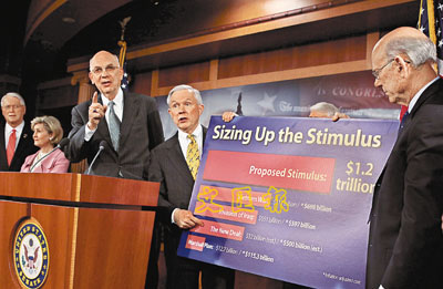 刺激經濟方案上周在眾議院表決時,竟然得不到任何一位共和黨議員支持,對尋求打破黨派藩籬的奧巴馬而言是沉重打擊。以目前參院的勢力分布,民主黨若拉攏不到任何共和黨議員倒戈,共和黨便可采取阻延策略阻撓方案。