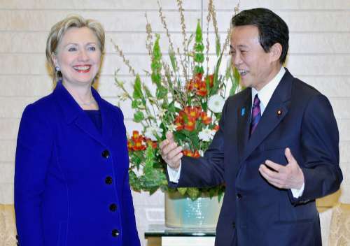 麻生與希拉里當日就加強美日同盟和為克服世界性經濟危機的合作會談。希拉里還宣布,麻生本月24日會應邀到華盛頓和奧巴馬會談,他將是奧巴馬上任后在白宮接見的第一位外國領袖。在全球經濟不景氣的情況下,這是一個向外界展示全球排名第一第二的經濟大國攜手合作的良機。