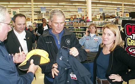 據(jù)英國《每日電訊報》24日報道,布什21日曾去達拉斯的一家五金店購買手電筒和電池,但店里的顧客竟沒人注意到他就是奧巴馬1月20日就任前世界上最有權(quán)力的人物。五金店的銷售經(jīng)理安德烈□邦德稱,布什當天穿的棉褲和防風(fēng)夾克,一開始覺得有點兒像布什,但穿著太樸素也不敢肯定。結(jié)果眼尖的五金店員工不久就認出這位顧客的確是布什,尤其是布什的夾克上標有“George W Bush”(喬治-W-布什)和總統(tǒng)印章。