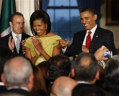 5月4日,奧巴馬夫婦和墨西哥駐美大使(左)參加慶祝活動(dòng)。