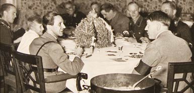 這份文件還記錄稱,更加令人感到驚奇的是,在進餐時的談話中,希特勒的語氣并不像他在公共場合演講時那樣略帶沙啞的“歇斯底里”,而是用“標準的男中音”。對于女性,希特勒總會表現出一種極其自然的殷勤與真誠。他那帶有“古老奧地利”口音的殷勤和文雅,給他的言行舉止增添了一種不可抗拒的魅力。他對在他手下工作的女性總是十分尊重,而且沒有任何偏見。當然他也要求手下的工作人員專心致志并且徹底犧牲個人的自由。希特勒在追求女性方面是一個極其糟糕的心理學家,因為他本身就是一個完美的喜劇演員,很難分辨哪是本性哪是偽裝。所有接近他的人,尤其是女人總是把自己最美的一面展示出來,而希特勒對她們表現出來的殷勤和虛偽總是信以為真。他明顯偏愛他的一名女秘書,這位秘書非常懂得滿足他的虛榮心。她在場的時候,希特勒總是會露出愉快的笑容,
