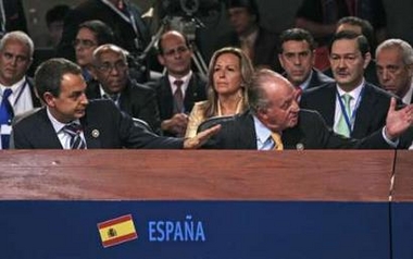 在這種情況下,坐在薩帕特羅身后的西班牙國王卡洛斯突然向前探身,告訴查韋斯,“你為什么還不住嘴?”據(jù)稱,卡洛斯使用的語言是西班牙人一般用來和熟人聊天或是教訓(xùn)孩子的。薩帕特羅之后表示,表達(dá)個人意見“不應(yīng)該冒犯其他人”。