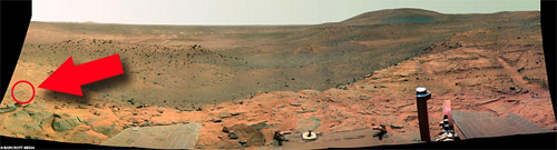 不久前,美國宇航局“勇氣號”火星探測器發回一系列火星表面的照片,有天文愛好者竟在其中一張照片中發現一個類似女性外形的“火星人”。難道真的有“外星人”?
