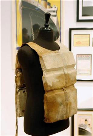 目前世界上僅存6件泰坦尼克號上的救生衣,2007年英國曾拍賣過一件類似的救生衣,當時拍價為11萬9千美元。