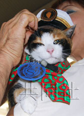 中新網(wǎng)7月22日電 共同社報道,日本和歌山電鐵貴志川線貴志車站的超級站長——9歲的雌貓“阿玉”20日領取了她的“獎金”:一頂夏季制服帽和一張專用床。