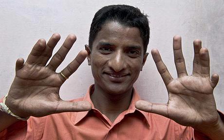 印度一名男子先天畸形,長有12個手指和14個腳趾,這個數(shù)字打破了此前同樣是一名印度人創(chuàng)造的長有12個手指和13個腳趾的世界紀(jì)錄。
