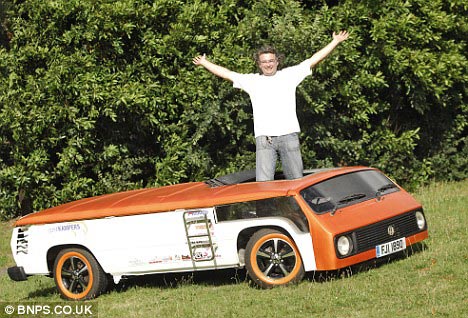 英國人安迪·桑德斯和三個(gè)朋友用了3天時(shí)間,將一輛高2.4米的大眾轎車改裝成了世界上最矮的露營巴士——高度還不到1米。