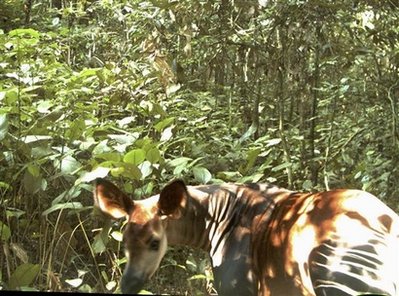 中新網9月12日電 綜合報道,倫敦動物學會11日發布了在非洲剛果國家公園叢林內裝設的隱藏相機首度拍攝到的額頭中央突起類似獨角的非洲鹿(okapi)照片,具有鹿和長頸鹿的特征,紋路卻像斑馬。