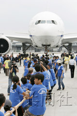 家長們加入進來后機體才稍稍移動了數米,大家頓時擊掌歡呼。來自千葉市的小學二年級學生堀江昌大(8歲)睜大眼睛說,“手很痛,看到飛機真的動了大吃一驚”。