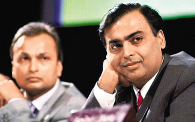 穆克什領(lǐng)導(dǎo)的信實(shí)工業(yè)公司(Reliance Industries )是印度最大的民營企業(yè),其主要領(lǐng)域?yàn)槌小⒅圃鞓I(yè)與石油業(yè),據(jù)稱其身價(jià)達(dá)430億美元,安巴尼是信實(shí)AGA(Reliance AGA)集團(tuán)總裁,主攻電信與銀行,其身價(jià)據(jù)悉達(dá)420億美元。兩人的財(cái)富占印度國內(nèi)生產(chǎn)額的5%。