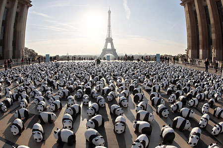 中新網(wǎng)10月20日電 綜合報道,10月18日,在法國首都巴黎,1600只紙制熊貓被放置在廣場上供人們參觀。這一活動由世界自然基金會(WWF)發(fā)起,旨在呼吁人們保護為數(shù)不多的大熊貓,同時提醒人們保護賴以生存的自然環(huán)境。