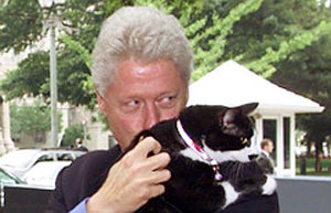 索克斯曾是一只普普通通的流浪貓,或許是受命運(yùn)之神的眷顧,索克斯被克林頓的女兒切爾西收留為寵物。索克斯背部毛色漆黑,四個(gè)爪子卻呈雪白色,如同穿了四只白色的襪子一樣可愛(ài),因此被命名為索克斯(Socks,英文原意是短襪)。1992年,克林頓入主白宮,索克斯也隨著第一家庭到了華盛頓,升格為“第一貓”。在白宮的8年里,它多次追隨主人出現(xiàn)在公眾面前;它的照片還出現(xiàn)在白宮的圣誕卡片上。克林頓一家離開白宮后,索克斯由柯里收養(yǎng)。不過(guò)前“第一家庭”并沒(méi)有和它切斷聯(lián)系,在競(jìng)選2008年美國(guó)總統(tǒng)時(shí),希拉里頻頻把索克斯掛在嘴邊,試圖軟化“鐵娘子”形象。(汝智)