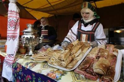 臺灣東森新聞報道,俄羅斯一年一度的煎餅周登場,莫斯科紅場附近被擠得十分熱鬧,為迎接這個東正教的節日,婦女們紛紛穿戴上色彩鮮艷的服裝和頭飾來迎接春天的到來,有人說暖呼呼的煎餅,彷佛可以讓俄羅斯人忘卻了當地可以長達半年的寒冬之苦。