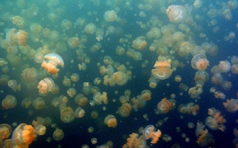 據(jù)悉,帕勞水母湖曾是海的一部分,由于地殼運(yùn)動(dòng),周?chē)暮4采撸饾u將它與外海隔絕,形成了一個(gè)看似普通的內(nèi)陸咸水湖。其不普通在于,湖中大多數(shù)海洋生物都隨著養(yǎng)分的消耗而消亡,只剩下了一種低等的、靠少量微生物就可以生存的海洋生物——水母。由于天敵們的消失,這些水母“遺失”了祖先用以防衛(wèi)自身的武器——身體內(nèi)的毒素。這樣,帕勞水母湖擁有了世界上獨(dú)一無(wú)二的無(wú)毒水母。