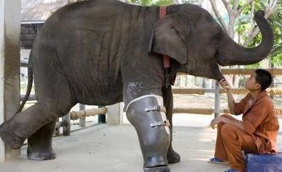 據悉,這只亞洲象名叫摩薩,當前已有3歲大。2007年不幸踩到地雷后,前右腿慘遭炸毀,年僅7個月大的亞洲象摩薩面臨生命危險。在被迅速送往泰國"亞洲象之友"動物基金會后,醫生為其實施了緊急救治,并為其安裝假肢。