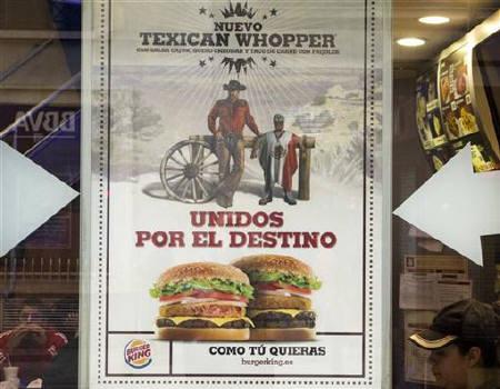 中新網(wǎng)4月15日電 據(jù)路透社報(bào)道,漢堡王公司為最新推出的德州-墨西哥式漢堡所做的廣告激怒了墨西哥官員,因該廣告中的一名墨西哥男子身披該國(guó)國(guó)旗蹲坐著。