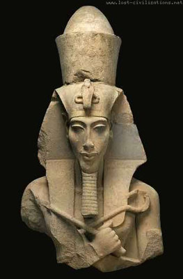 埃及法老王阿赫那吞因在多神信仰的古埃及引入一神論的革新行為而被世人所熟知,他統治的時期約為公元前1300年中期。阿赫那吞娶了尼菲蒂蒂,歷史上有名的法老圖坦卡蒙可能是他的兒子或同父異母的兄弟。(Sabervan/拙知)