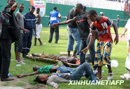 這場比賽是在阿比讓的烏弗埃-博瓦尼體育場進行的,共有近5萬名觀眾在現場觀看了比賽。有消息說,引發這一意外事件的原因是體育場的一面墻突然坍塌,致使附近的觀眾在恐慌中奪路逃離現場時發生了踩踏事件。據介紹,目前這個體育場的周邊已經恢復了平靜。