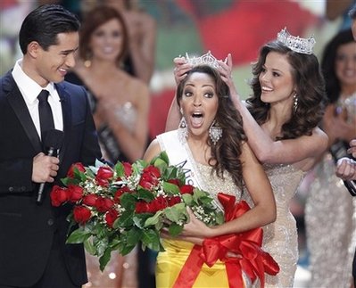 中新網(wǎng)1月31日電 據(jù)美聯(lián)社報(bào)道,當(dāng)?shù)貢r(shí)間30日晚上,2010年度美國小姐大賽結(jié)束。來自弗吉尼亞州的卡梅隆(Caressa Cameron)贏得了2010年美國小姐稱號(hào)。