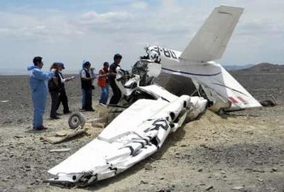 秘魯國家通訊社稱,飛機上共有3名智利人和4名秘魯人,其中包括一名兒童。警方稱事故發(fā)生在當?shù)貢r間11時30分,出事地點靠近古老神秘的游覽勝地納斯卡地畫區(qū)。