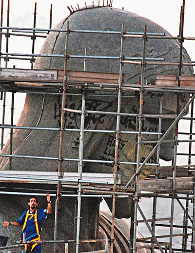 中新網4月18日電 據香港《文匯報》報道,巴西里約熱內盧連日豪雨觸發泥石流,多處地方坍塌,當局暫時關閉地標耶穌山,在耶穌像周圍筑起棚架,為這個世界七大奇景之一進行修葺。怎料,有人闖入用黑色噴漆在雕像頭、胸和手涂鴉,寫上暗喻暴力和犯罪的字句,如“貓兒不在,老鼠出擊”等。
