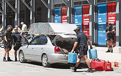 中新網6月26日電 據香港《文匯報》26日報道,G20峰會前夕,各成員國領袖陸續抵,加拿大警方在多倫多市采取極嚴密保安措施。連日來已有3名可疑人士被捕,其中1名53歲男子前日駕車經過峰會會場禁區,由于車頂綁著1個鋼制儲物箱,模樣怪異,引起警方注意。警察攔車檢查,赫然發現車上有十字弓、電鋸、棒球棍、大錘外,還有多種不明液體。警方沒收這批物品,并將他拘捕。