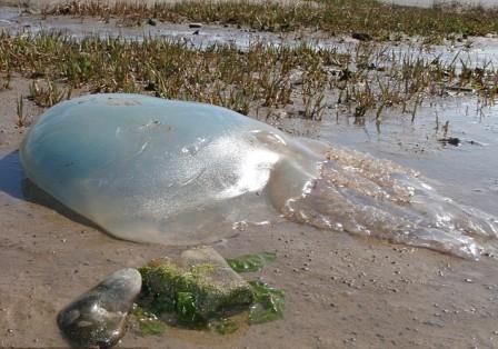 這種水母的學名稱為Rhizostoma octopus,因為它有8條大觸須,通常生活在英國海岸附近,被海流和海風吹上岸邊。
