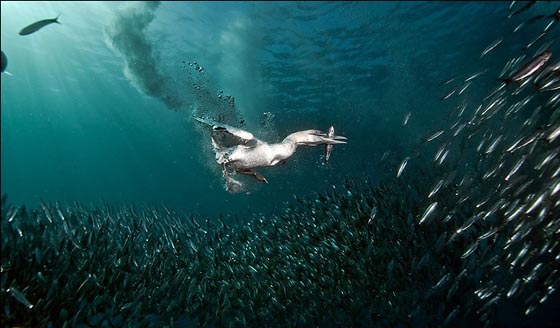 中新網(wǎng)5月25日電 做沙丁魚真的不容易!英國(guó)媒體25日刊登了一組照片,一大群正在遷徙途中的沙丁魚遭到肉食者們發(fā)自海空的多方襲擊,損失非常慘重。