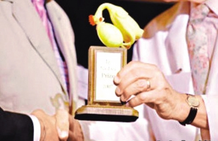 難得的是,雖然乍看之下得獎似乎并不光彩,主辦單位也表示如果得獎人覺得受辱,他們會撤銷提名。但事實上多數獲獎者都很高興,主辦方還會請來諾貝爾獎得主擔任評委。比如去年諾貝爾經濟獎得主克魯格曼這次就獲邀出席。
