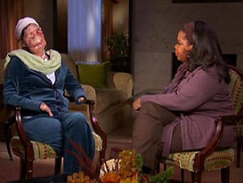 查拉-納什(Charla Nash)一現(xiàn)身節(jié)目,現(xiàn)場觀眾都非常震驚,即使見多識廣的歐普拉,也坦言從來沒見過這么可怕的面孔,就算是燒燙傷患者都沒有傷成這種程度──查拉這張臉,已沒有了眼睛、鼻子、嘴唇,甚至雙手也重殘,10個指頭全被咬斷。