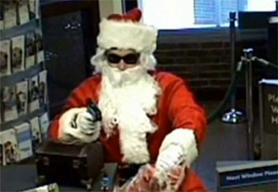 中新網12月24日電 據英國媒體報道,美國一名男子打扮成慈祥的圣誕老人模樣背著一個大麻袋走入銀行,正在辦理業務的顧客一陣欣喜,以為他要為大家發禮物,沒想到這個“圣誕老人”竟然掏出一把槍,大喊一聲:搶劫了!