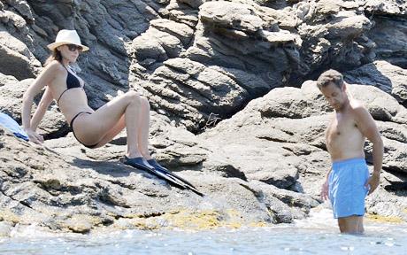 媒體拍到他們在海邊游泳的照片。這位注重身材的法國總統站在水中盡力收腹,健康問題看似已無大礙。布呂尼則戴著太陽帽和墨鏡,穿著黑色比基尼,大秀身材。他們并沒有進行激烈的運動,有記者只是看到他們在水中互相親吻。