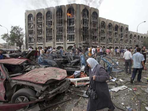 爆炸針對巴格達省政府大樓和伊司法部大樓,現場距離設于曼蘇爾酒店內的中國駐伊大使館及新華社僅50米,由于爆炸威力強大,使館門窗幾乎全部被毀,天花板脫落,兩名酒店中國廚師受傷,使館和新華社無人傷亡。