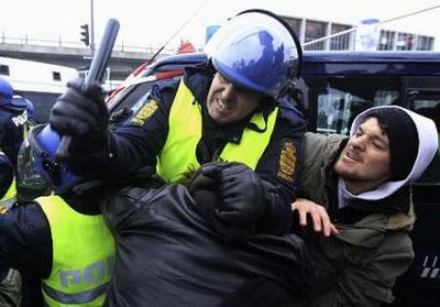 中新網12月17日電 哥本哈根聯合國氣候變化會議進入談判最后階段,場外抗議行動也益發激烈。據臺灣《中國時報》報道,哥本哈根郊區會場貝拉會展中心外的抗議人士越聚越多,與丹麥警方爆發多起推擠沖突,警方16日并動用胡椒噴劑和警棍,強力驅退試圖擾亂會議進行的抗議群眾。