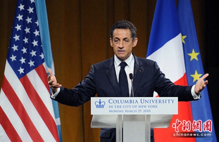 據報道,3月29日,薩科齊在美國紐約的哥倫比亞大學發表演講。可能是被哥倫比亞大學學生的熱情所感染,薩科齊放棄了事先準備好的演講稿,改說肺腑之言。他談到美國最近通過的醫療保險改革方案,說歡迎美國加入福利國家的行列。
