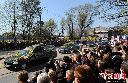 中新網(wǎng)4月18日電 綜合消息,當(dāng)?shù)貢r間18日下午2點(北京時間晚上8點),在空難中不幸殞命的波蘭總統(tǒng)卡欽斯基夫婦的國葬儀式在波蘭南部城市克拉科夫舉行。數(shù)萬名群眾聚集在一起,向總統(tǒng)夫婦做最后的“道別”。