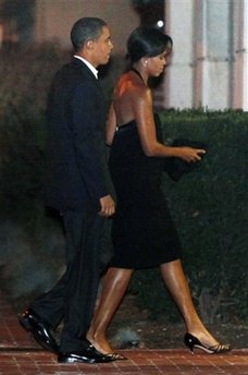 奧巴馬夫婦慶結婚17周年 米歇爾露背裝出門(圖)