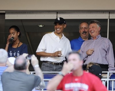 據報道,美國總統奧巴馬當晚身穿白色短袖T恤,頭戴白襪隊球帽。除了第一女兒薩莎和馬莉婭,白宮高級顧問阿克塞爾羅德和奧巴馬的華人妹夫吳加儒亦有同行,在一個私人包廂觀看賽事。