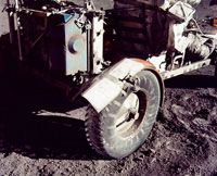 眾所周知,月球表面都被厚厚的月塵覆蓋,美國宇航員拍攝了很多他們在月球上留下的腳印。月球和火星異常現象研究專家約瑟夫·斯金波對這些證據一直心存質疑。從美國宇航員的照片上看,他們的月球車停靠在登陸艙很遠的地方,圖片上沒有車轍痕跡,就好像那輛登陸車是從太空艙飛過去的。“我們當然可以假設月球表面十分堅硬,不足以讓登陸車留下痕跡。可是,在登陸車旁邊卻有很多腳印,甚至在登陸車的下面也能看到。”